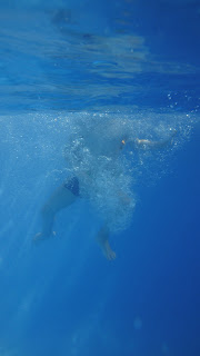 Estem passant gran part de l'estiu en remull. A la Llum sempre li ha agradat, i també li agrada bussejar, saltar, comença a nedar força bé fins i tot sense bombolleta... és una nena peix, nena sirena. Des que arribem a la piscina (o a la platja) fins que marxem no surt de l'aigua. En canvi, a en Biel li costa saltar... i ja no parlem de posar el cap sota aigua... bé... o li costava, perquè ara li encanta... a canvi, només volia una foto!